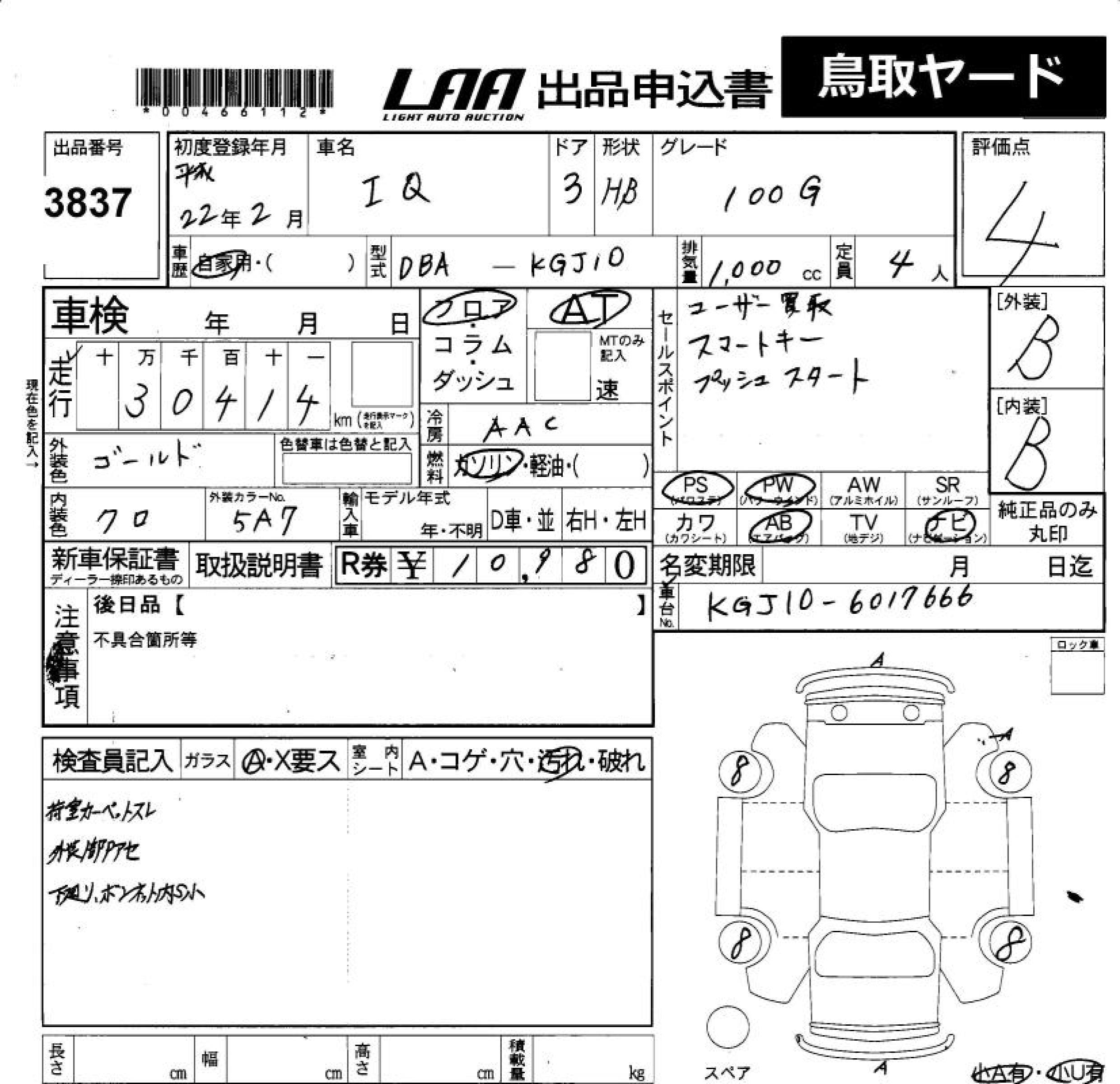 TOYOTA IQ - лот 3837