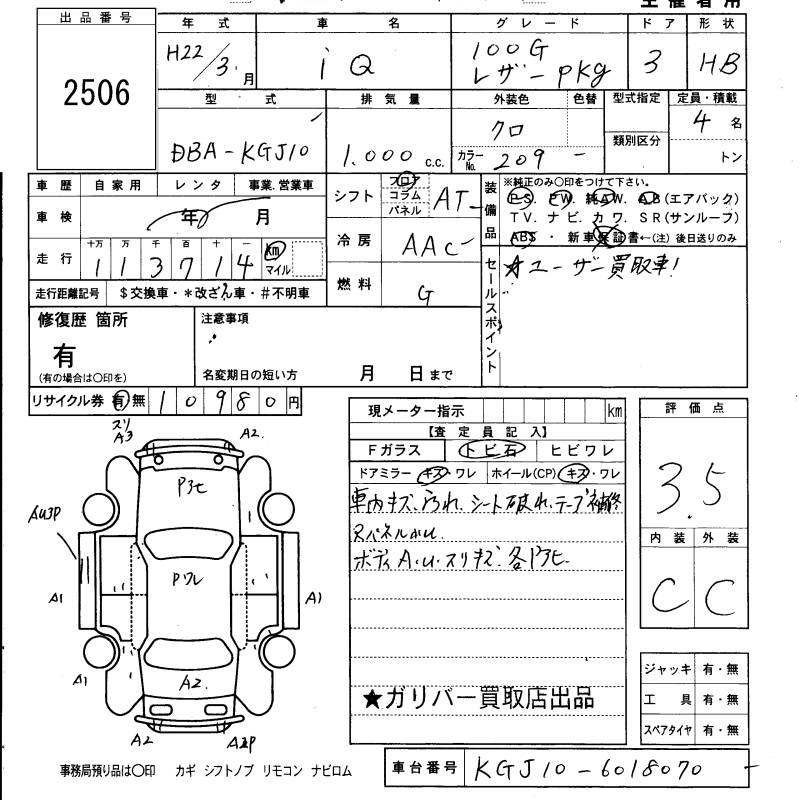 TOYOTA IQ - лот 2506