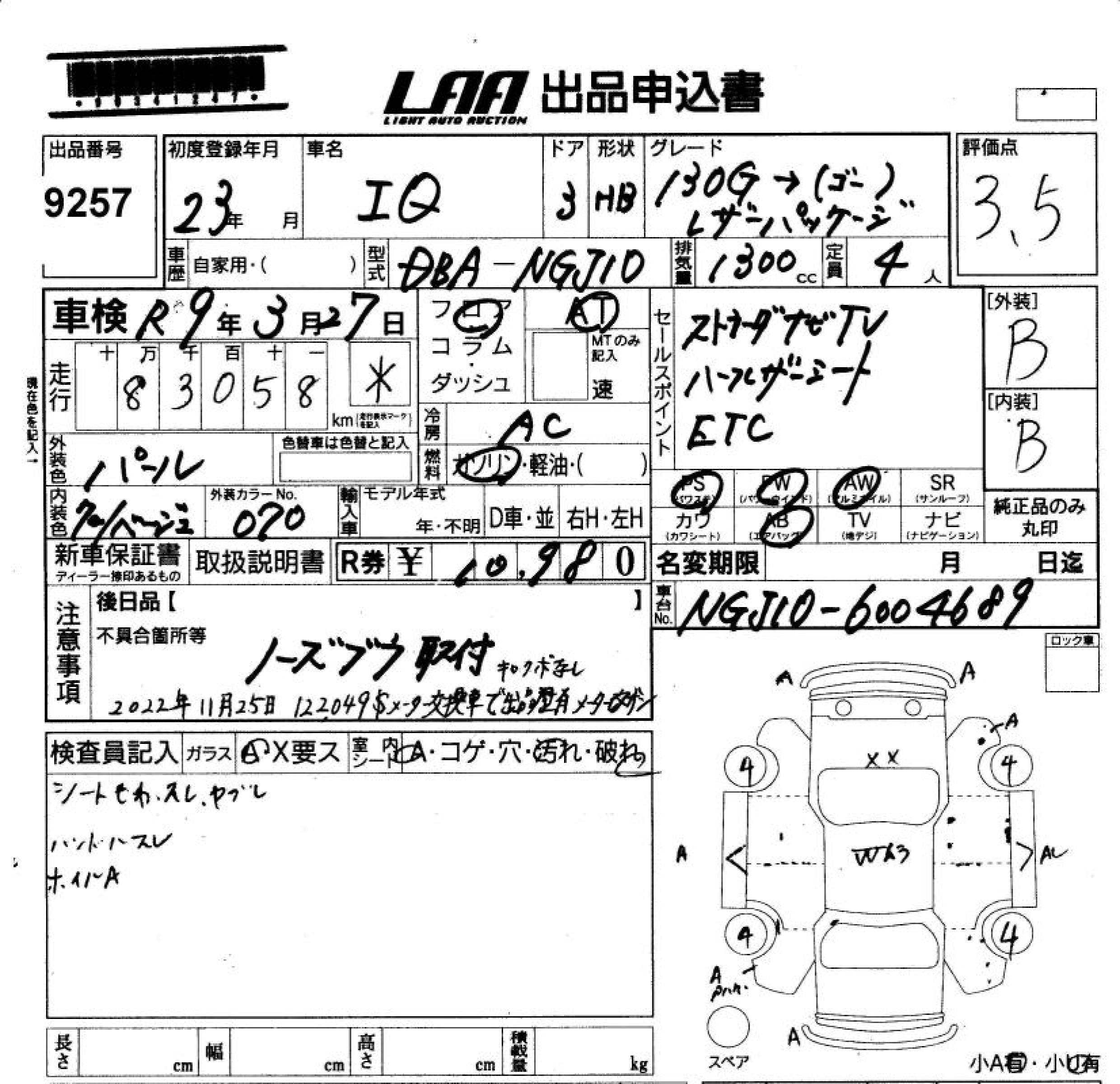 TOYOTA IQ - лот 9257