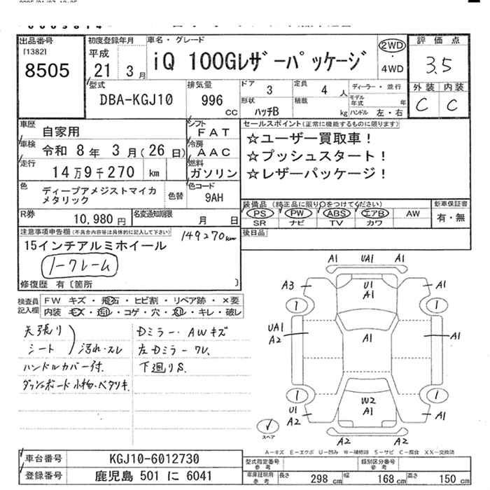 TOYOTA IQ 100G LEATHER PACKAGE 2WD - лот 8505