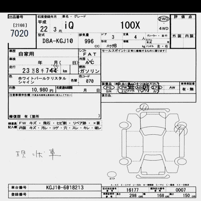 TOYOTA IQ 100X 4 PERSON - лот 7020