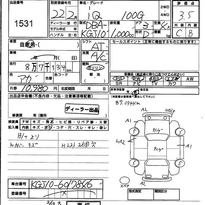 TOYOTA IQ 100G - лот 1531