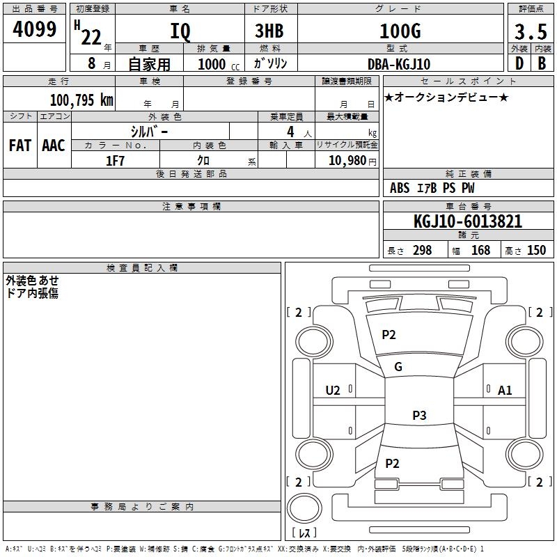 TOYOTA IQ 100G - лот 4099