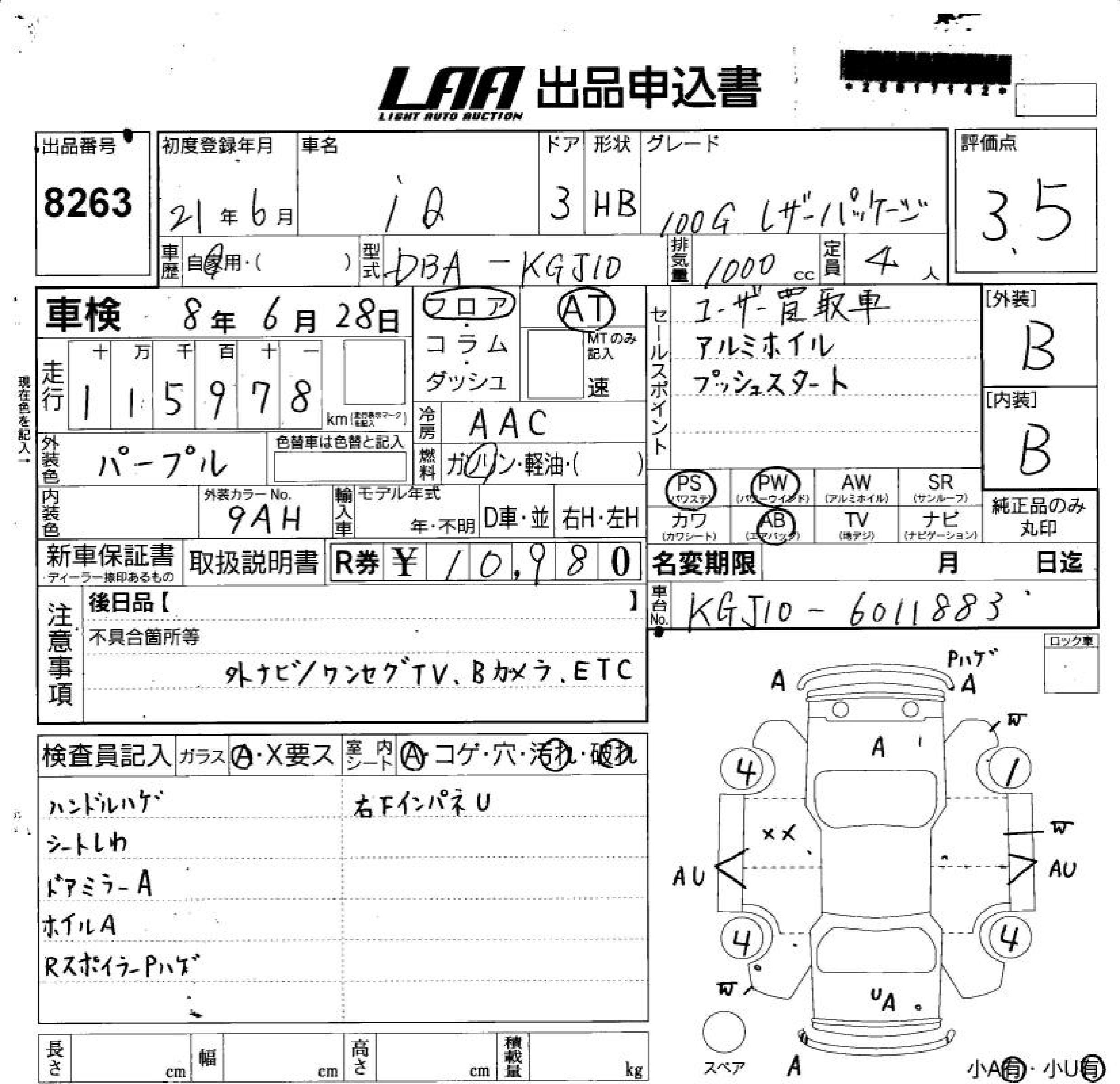 TOYOTA IQ 100G LEATHER PACKAGE - лот 8263