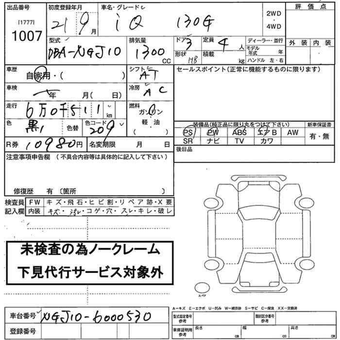 TOYOTA IQ 130G - лот 1007