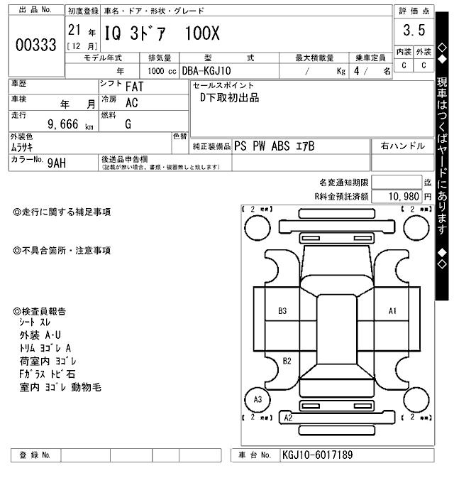TOYOTA IQ 100X - лот 333