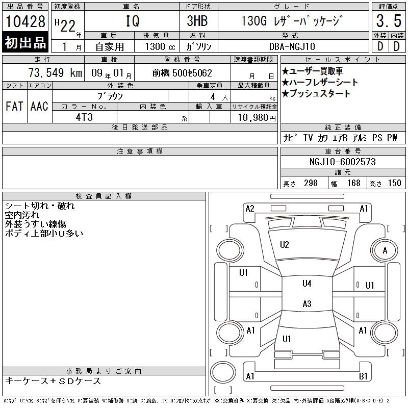 TOYOTA IQ 130G LEATHER PACKAGE - лот 10428