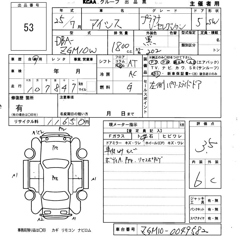 TOYOTA ISIS PLATANA V SELECTION - лот 53