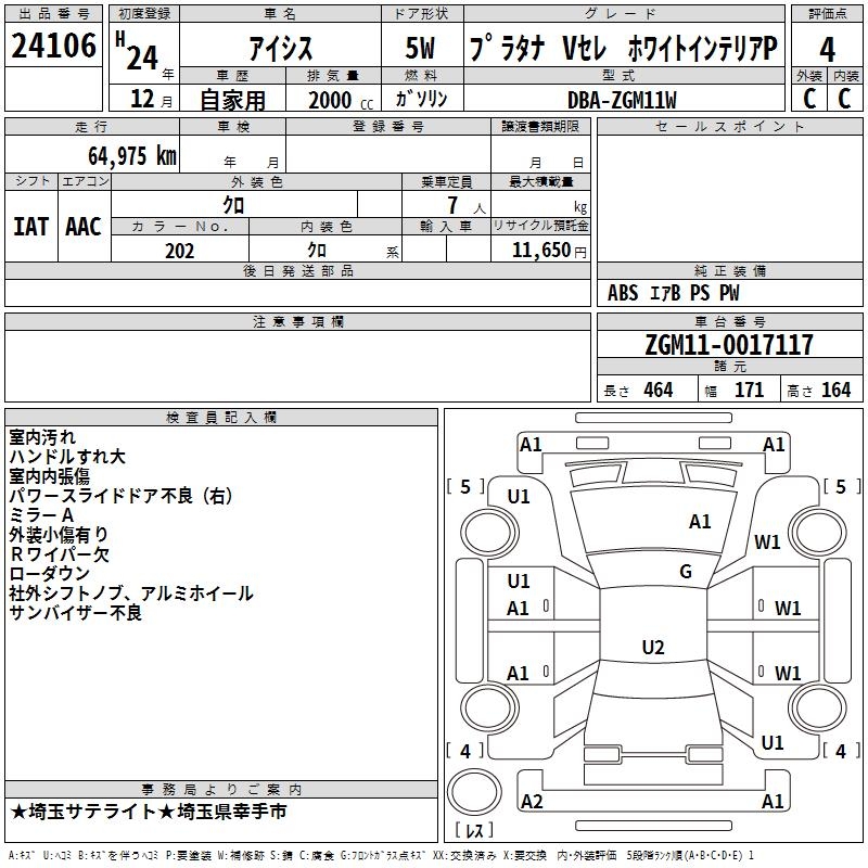 TOYOTA ISIS PLATANA V SELECTION WHITE INTERIOR P - лот 24106