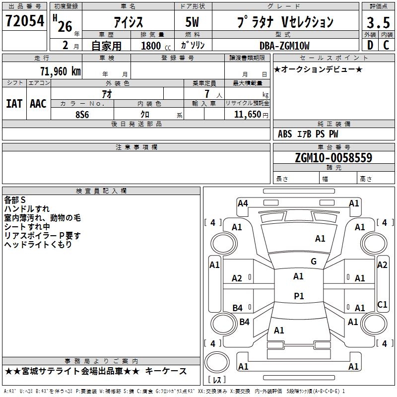 TOYOTA ISIS PLATANA V SELECTION - лот 72054