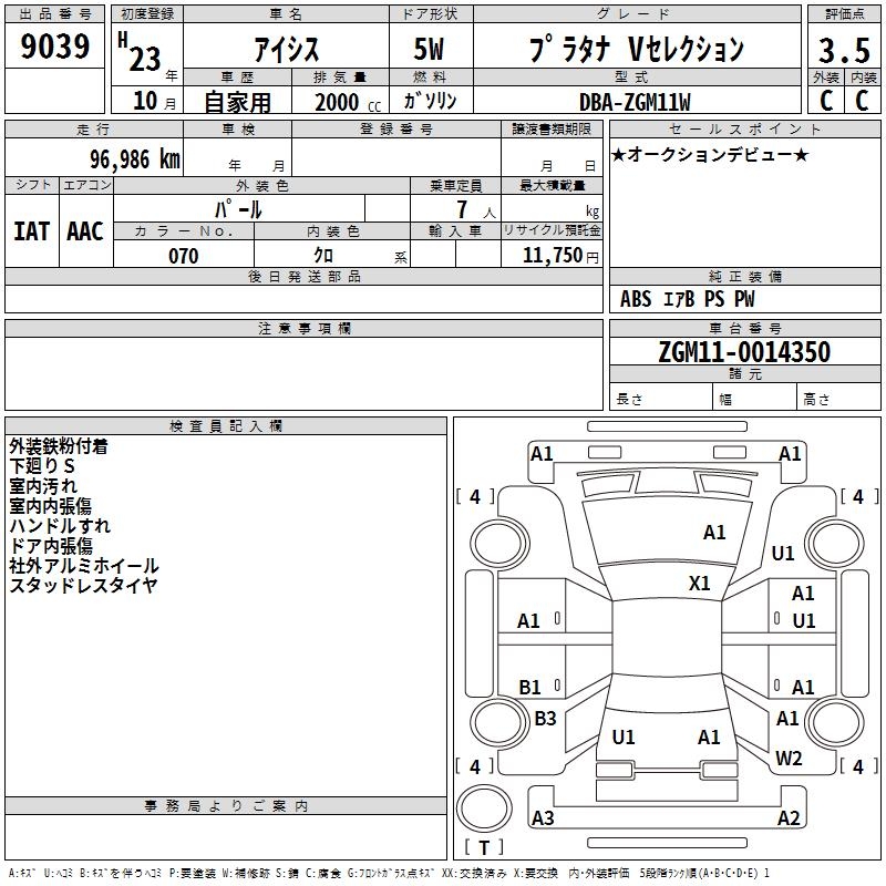 TOYOTA ISIS PLATANA V SELECTION - лот 9039