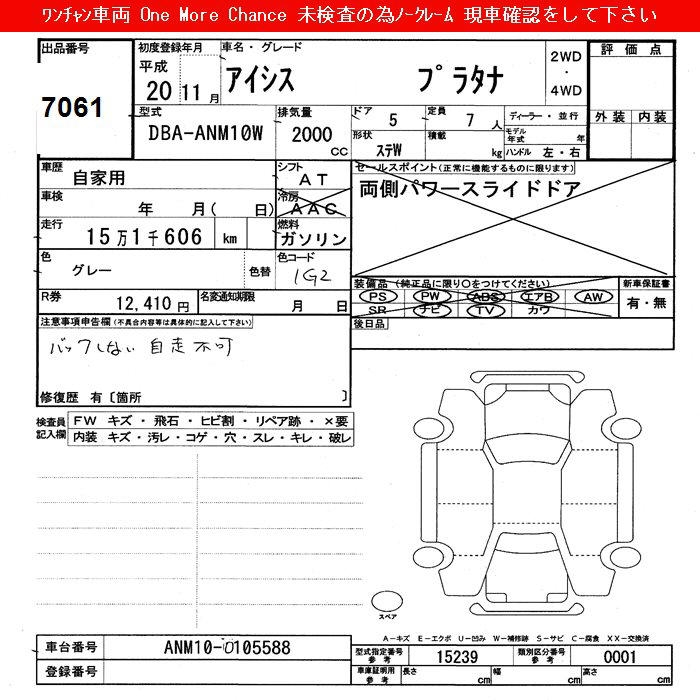 TOYOTA ISIS PLATANA - лот 7061