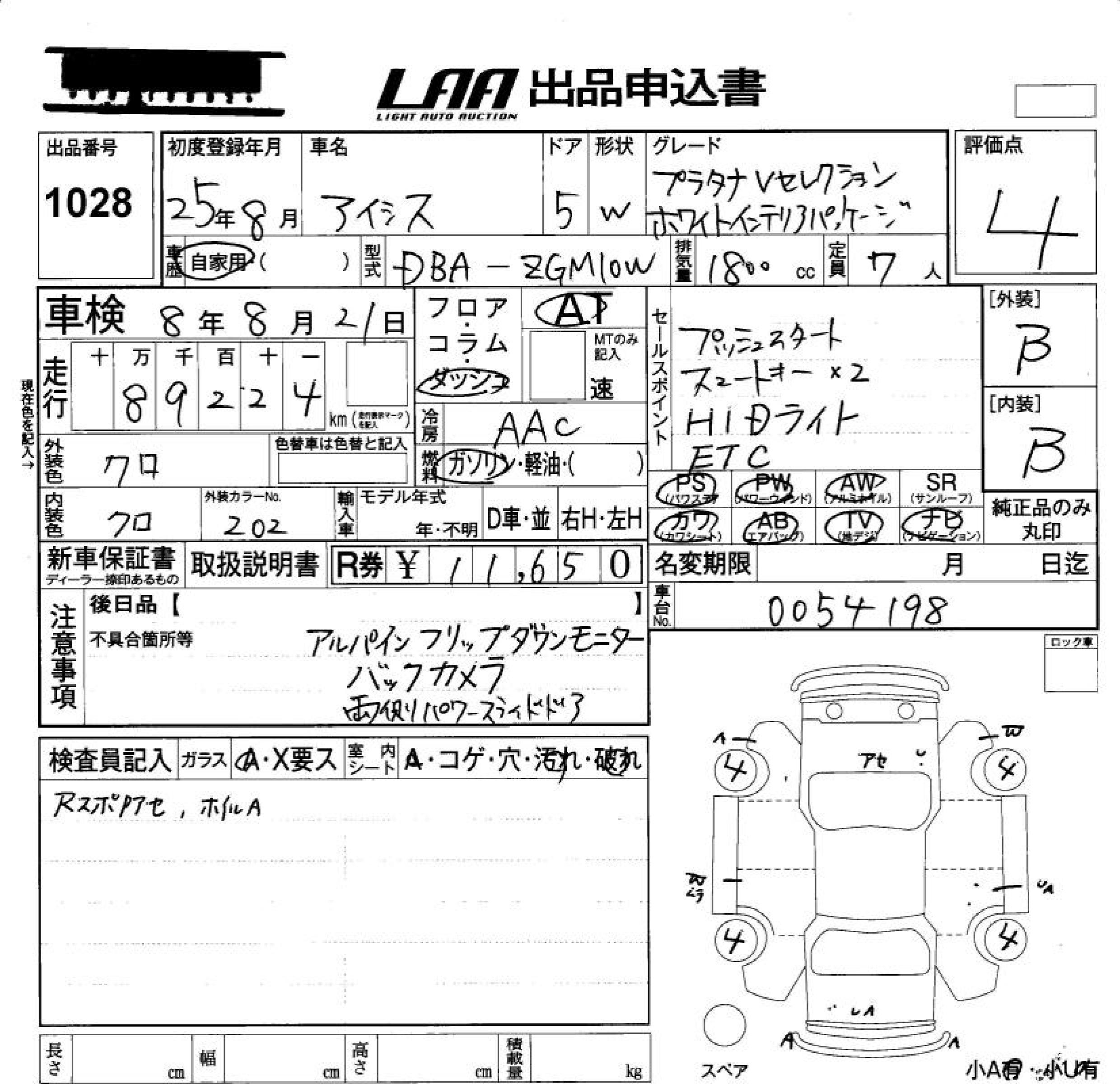 TOYOTA ISIS PLATANA V SELECTION * HO WA - лот 1028