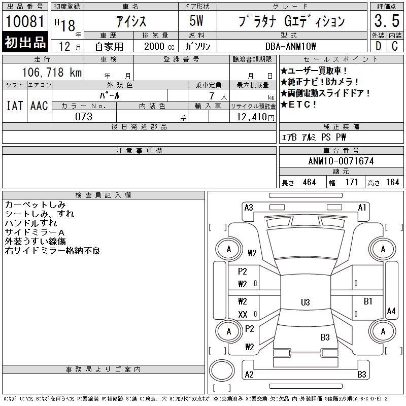 TOYOTA ISIS PLATANA G EDITION - лот 10081