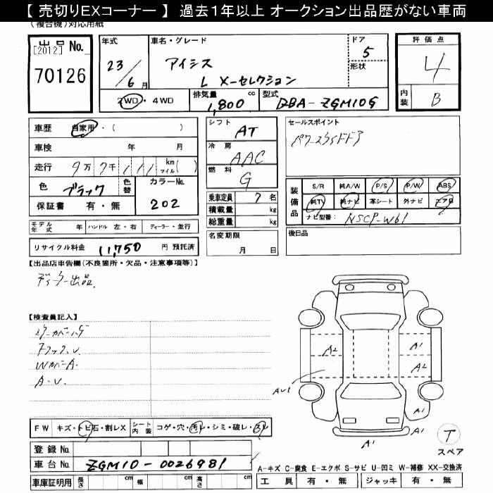 TOYOTA ISIS L X SELECTION - лот 70126