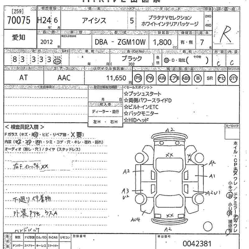 TOYOTA ISIS PLATANA V SELECTION WHITE INTERIOR PACKAGE -JI - лот 70075