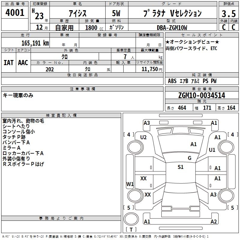 TOYOTA ISIS PLATANA V SELECTION - лот 4001
