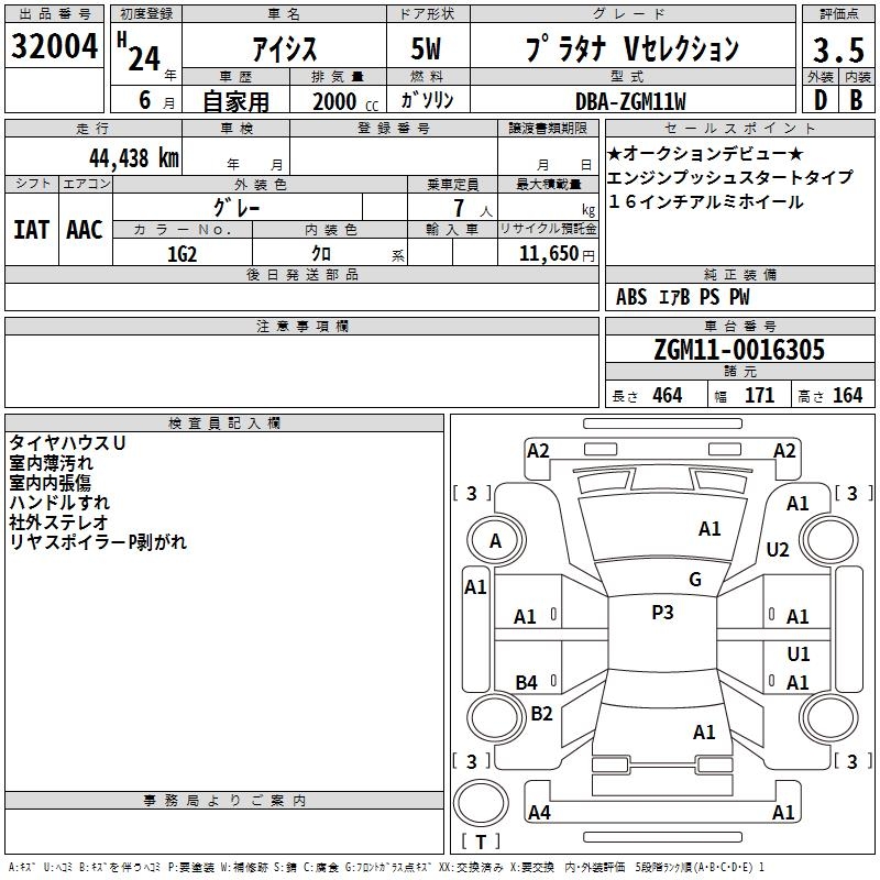 TOYOTA ISIS PLATANA V SELECTION - лот 32004