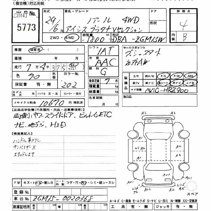 TOYOTA ISIS 4WD PLATANA V SELECTION NOIRE - лот 5773