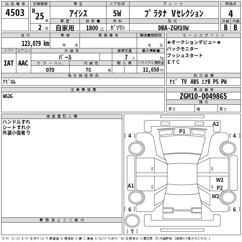 TOYOTA ISIS PLATANA V SELECTION - лот 4503