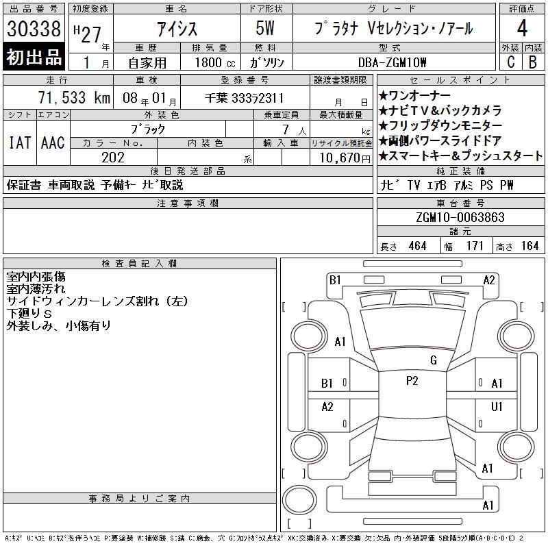 TOYOTA ISIS PLATANA V SELECTION * NOIRE - лот 30338