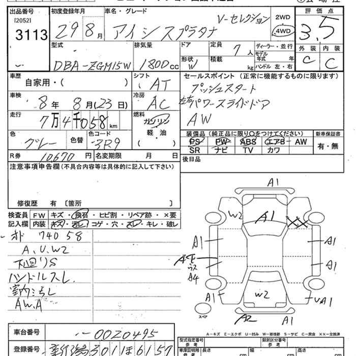 TOYOTA ISIS 4WD PLATANA V SELECTION - лот 3113