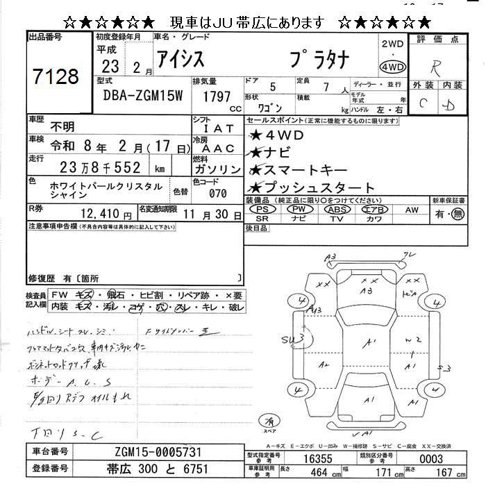 TOYOTA ISIS 4WD PLATANA - лот 7128