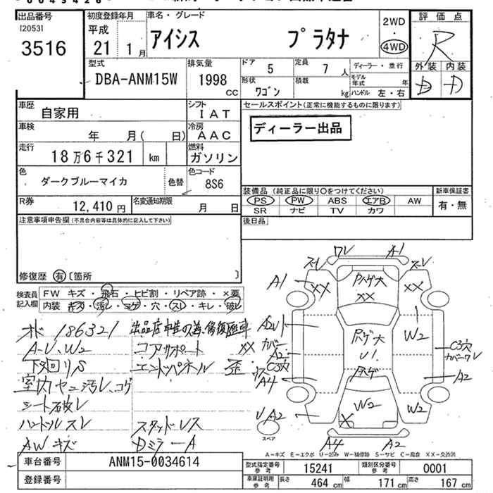 TOYOTA ISIS 4WD PLATANA - лот 3516