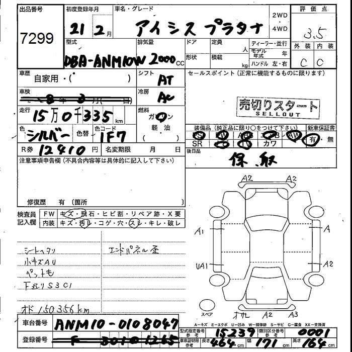 TOYOTA ISIS PLATANA - лот 7299