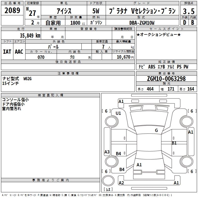 TOYOTA ISIS PLATANA V SELECTION *B RAN - лот 2089