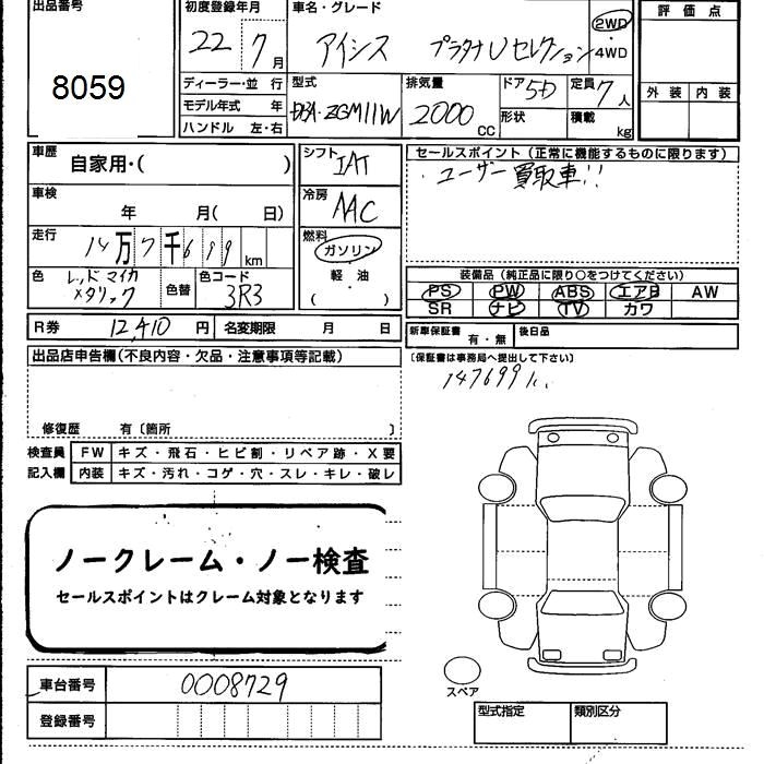 TOYOTA ISIS PLATANA U SELECTION - лот 8059