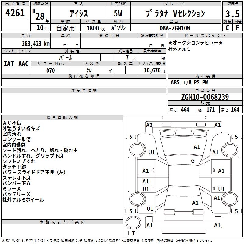 TOYOTA ISIS PLATANA V SELECTION - лот 4261