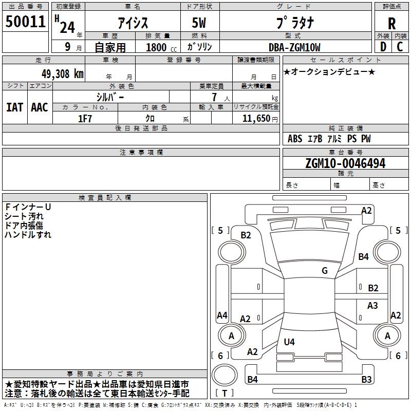 TOYOTA ISIS PLATANA - лот 50011