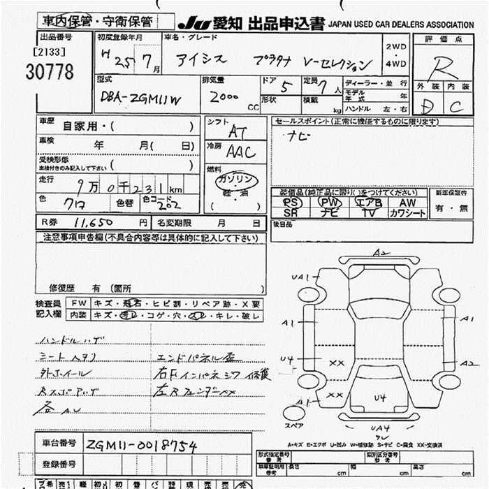 TOYOTA ISIS PLATANA V SELECTION - лот 30778
