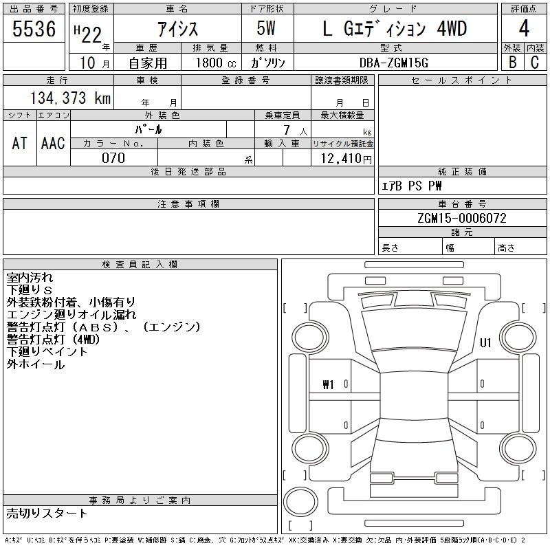 TOYOTA ISIS L G EDITION 4WD - лот 5536