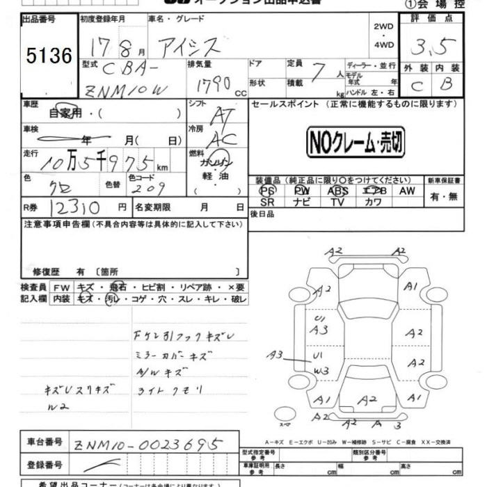 TOYOTA ISIS - лот 5136