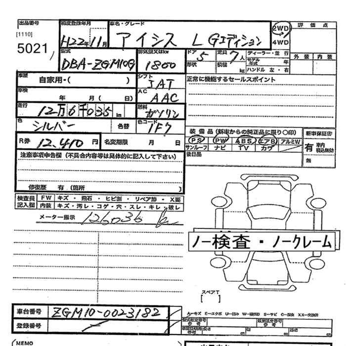 TOYOTA ISIS - лот 5021
