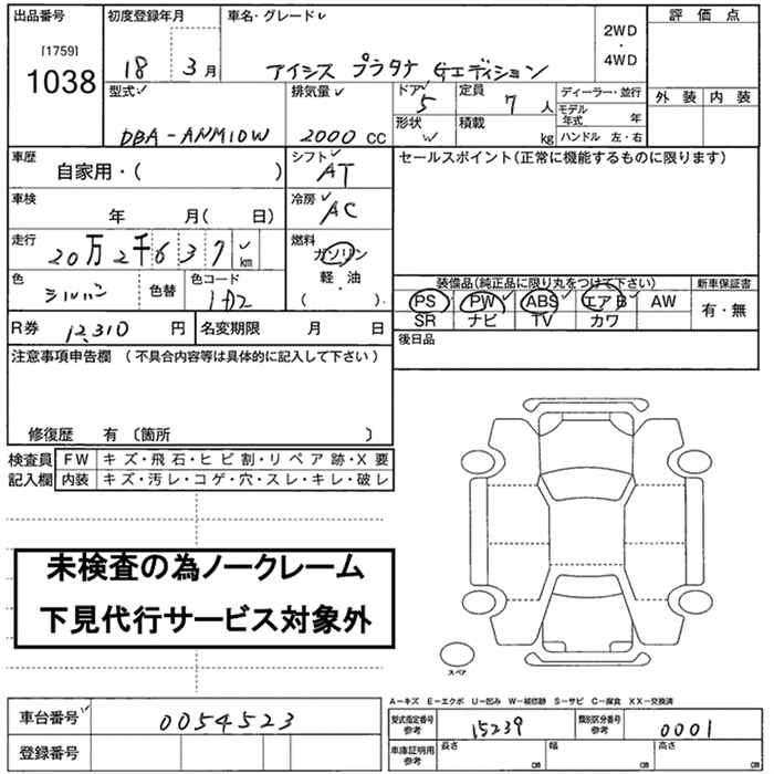 TOYOTA ISIS - лот 1038