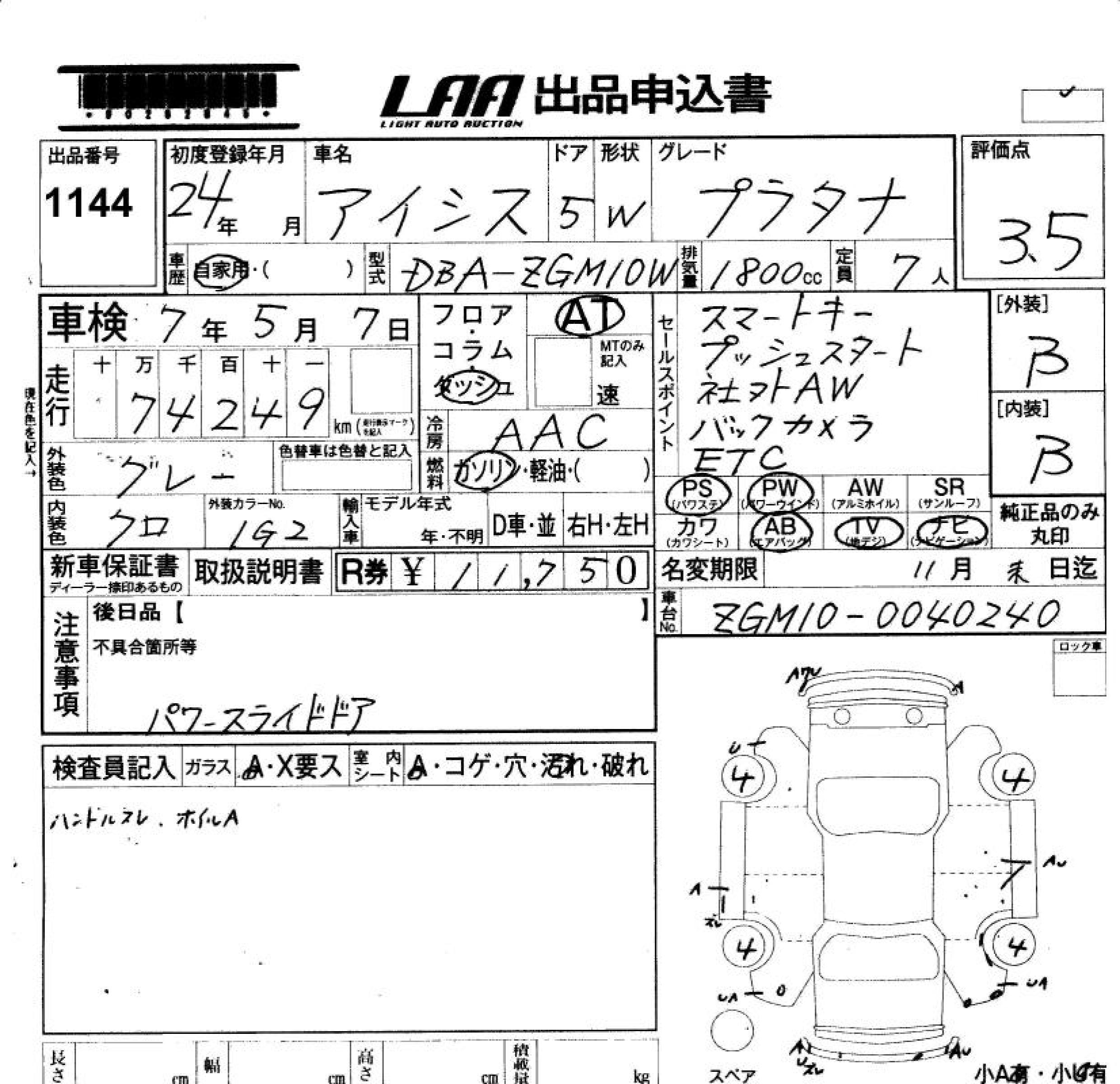 TOYOTA ISIS - лот 1144