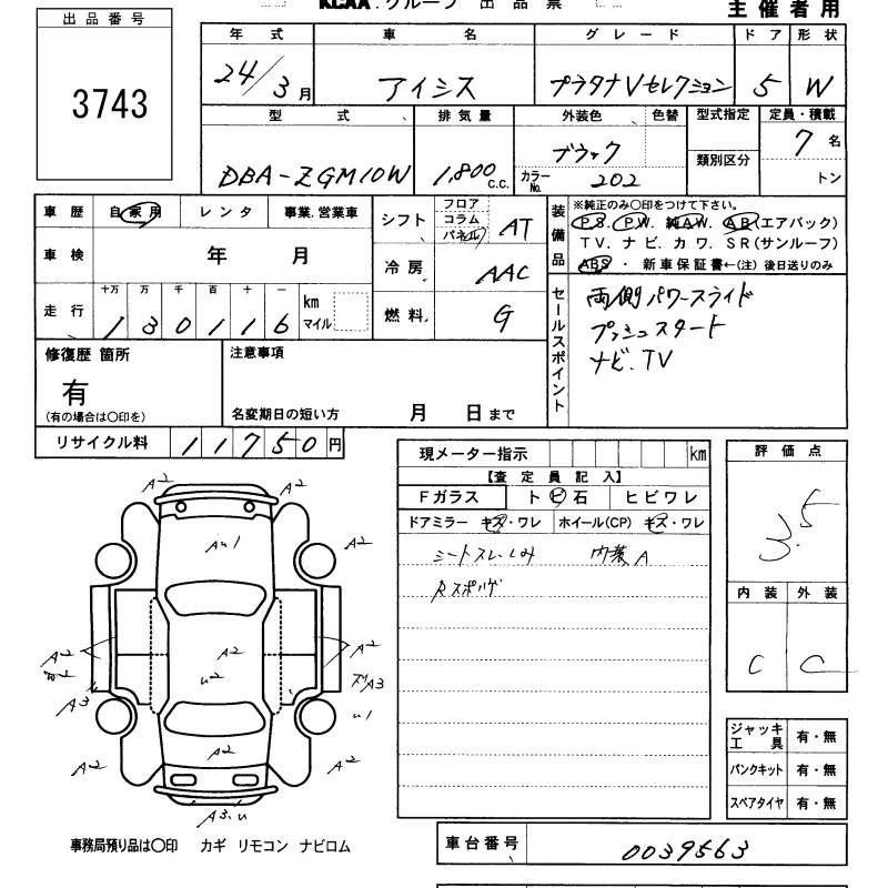 TOYOTA ISIS - лот 3743