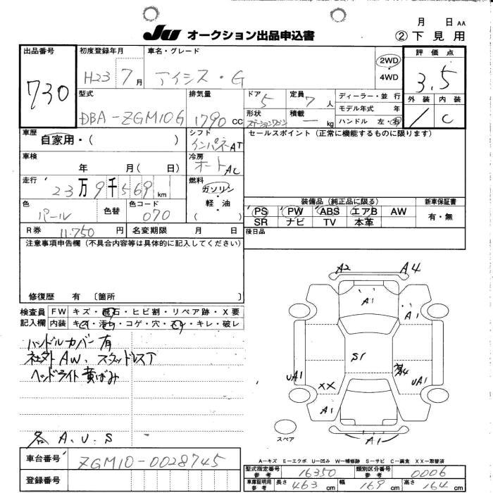 TOYOTA ISIS - лот 730