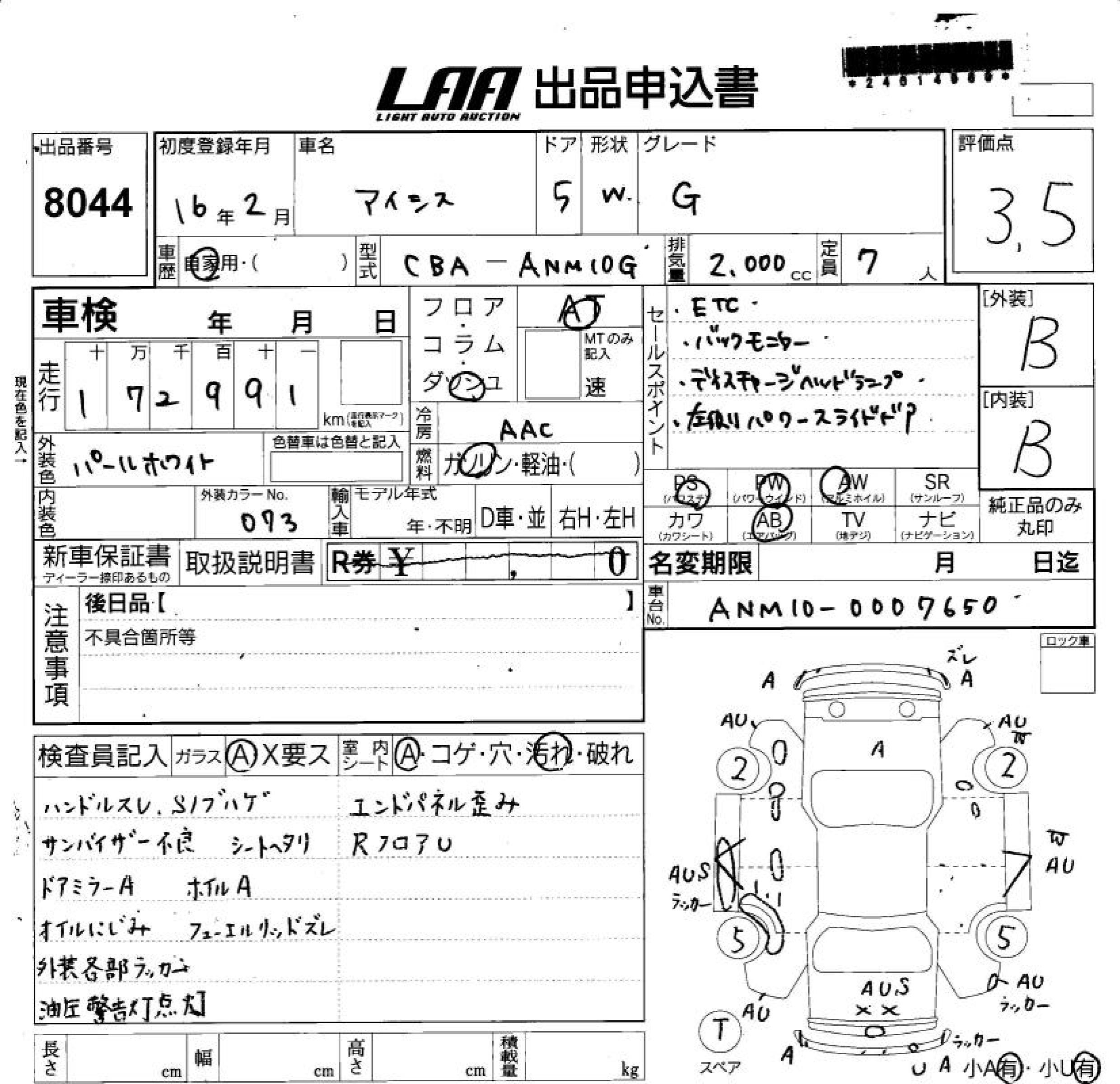 TOYOTA ISIS - лот 8044