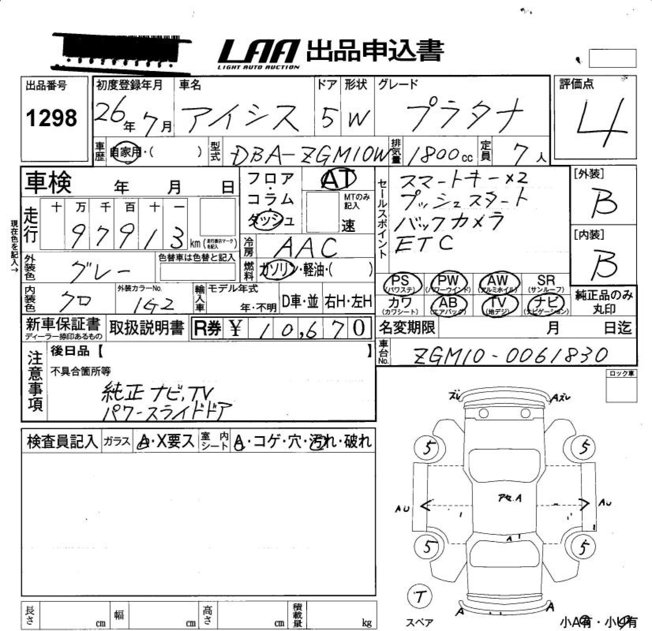 TOYOTA ISIS - лот 1298