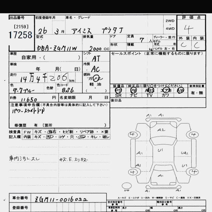 TOYOTA ISIS - лот 17258