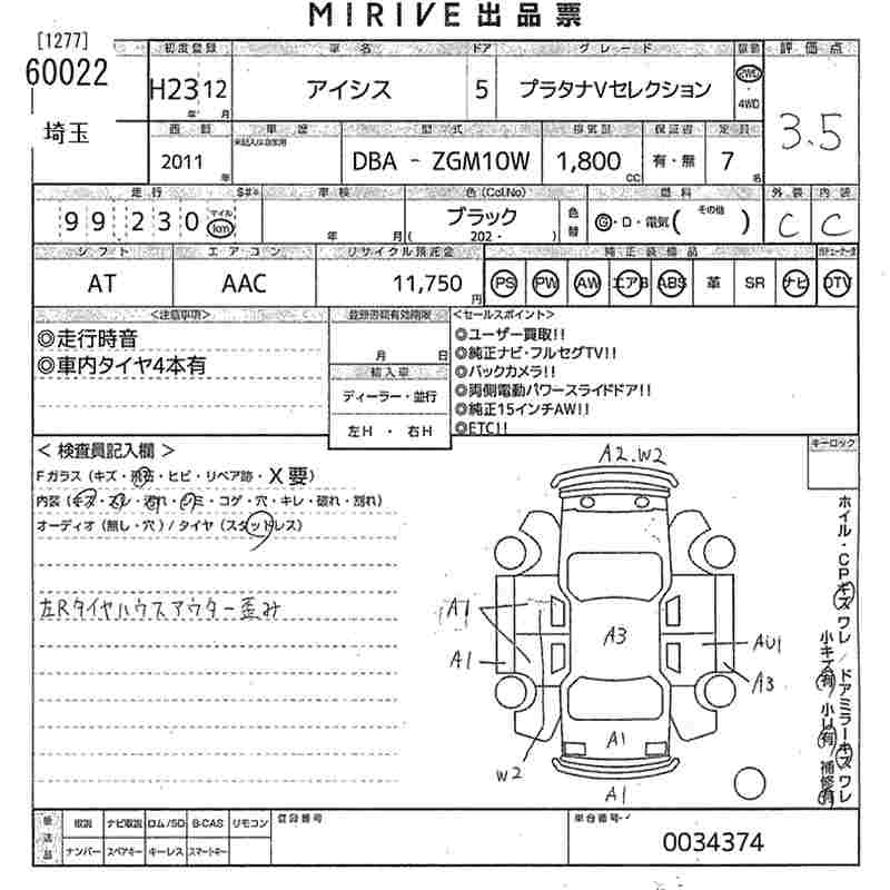 TOYOTA ISIS PLATANA V SELECTION - лот 60022