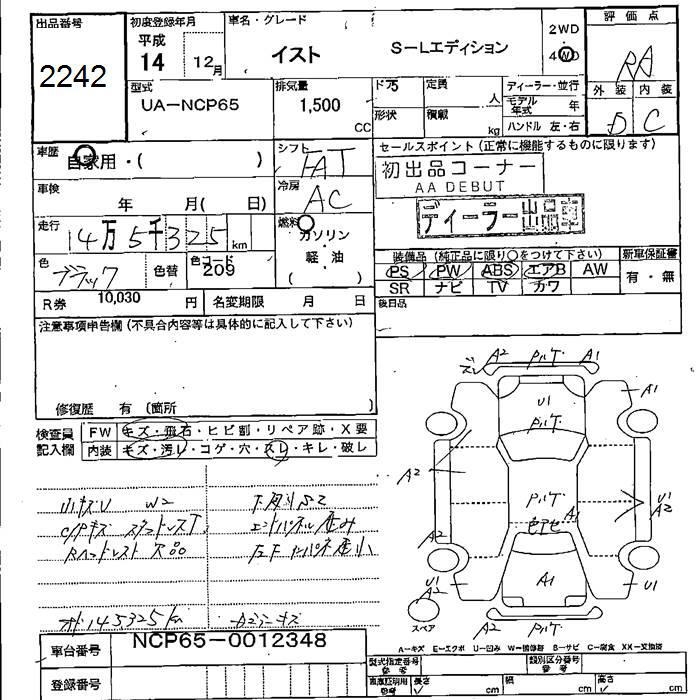 TOYOTA IST - лот 2242
