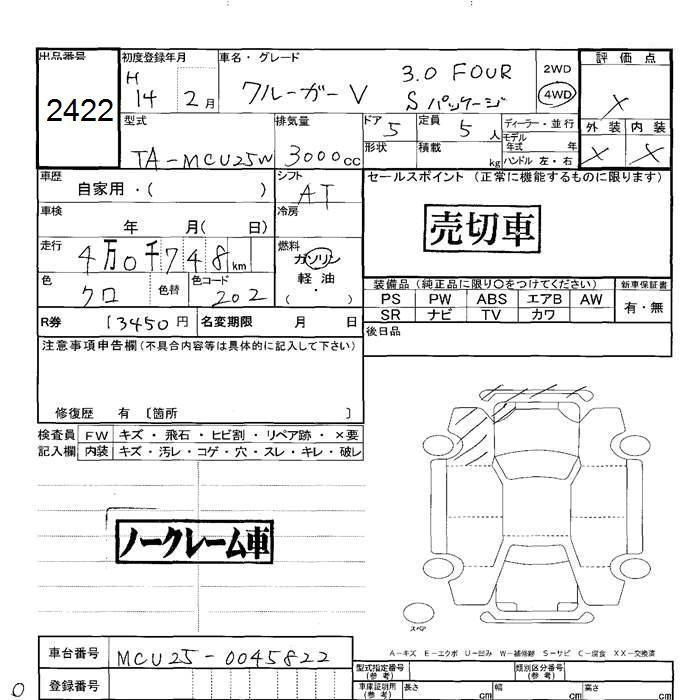 TOYOTA KLUGER V - лот 2422