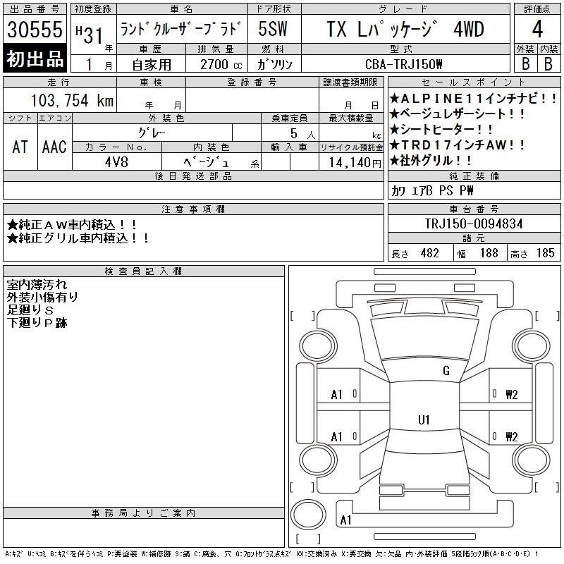 TOYOTA LAND CRUISER PRADO TX L PACKAGE 4WD - лот 30555