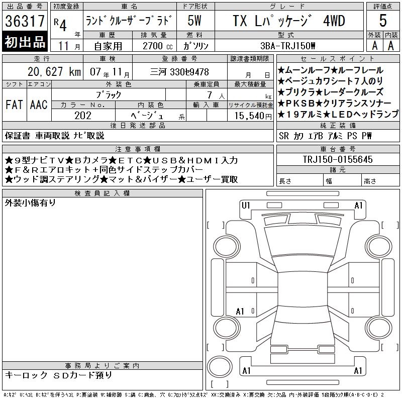 TOYOTA LAND CRUISER PRADO TX L PACKAGE 4WD - лот 36317
