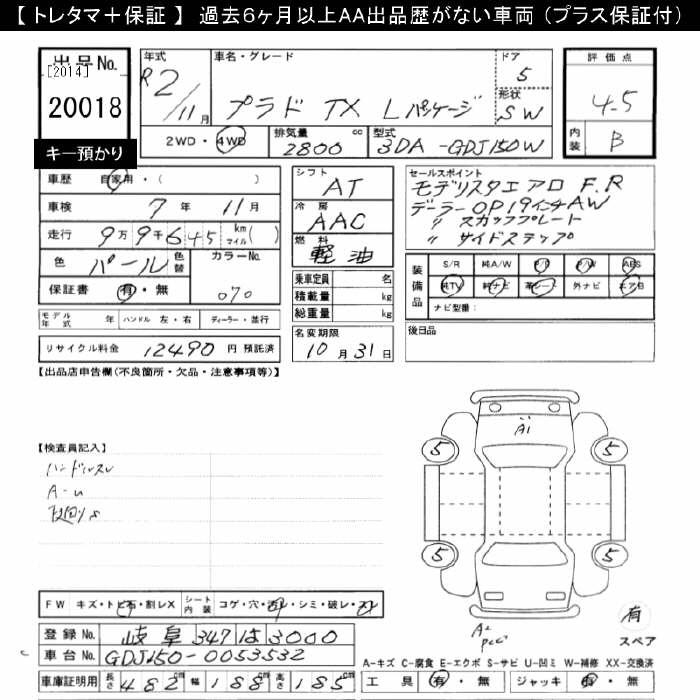 TOYOTA LAND CRUISER PRADO 4WD TX L PACKAGE - лот 20018